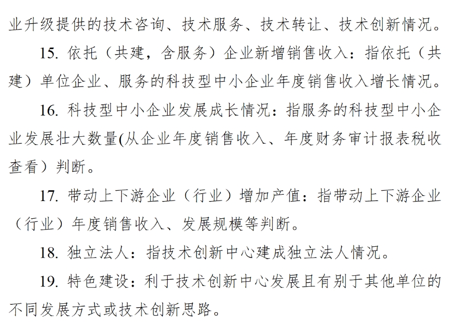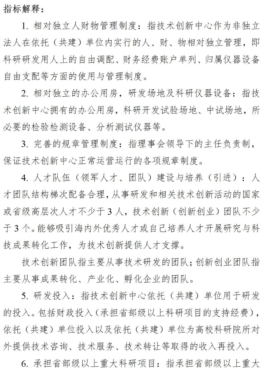 第二十五条 对省技术创新中心绩效考核的重点为承担国家和省重大战略任务、关键核心技术攻关、科技成果转化、培育孵化科技型企业以及对产业辐射带动作用等内容。绩效考核评价指标体系及指标解释见附件。