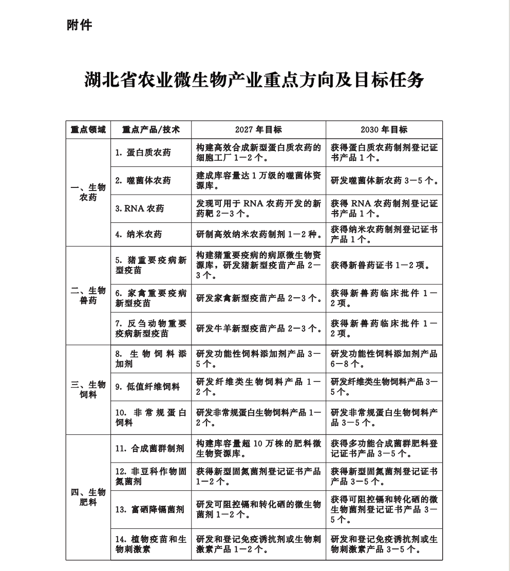 附件:湖北省农业微生物产业重点方向及目标任务