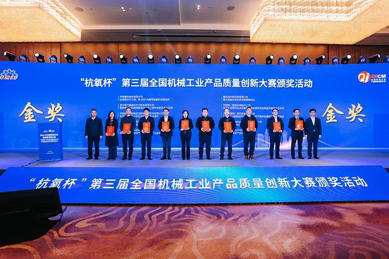 本次活动由中国机械工业联合会和中国机械工业集团有限公司共同主办,以“守正创新 质胜未来”为主题。大赛经过线上初赛评审,专业协会复审,决赛评审和社会公示,最终确定241项产品质量创新项目获奖,其中金奖30项、银奖100项、优秀奖111项。大会现场颁发了“杭氧杯”第三届全国机械工业产品质量创新大赛证书及奖杯。