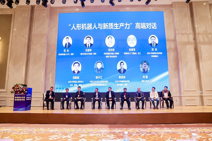 在主论坛“人形机器人与新质生产力”高端对话环节,山东大学教授、博导田新诚,南方科技大学教授、博导王建坤,齐鲁工业大学(山东省科学院)电子电气与控制学部主任杨子江,济南(国际)机器人与高端装备产业协会会长岳双荣,山东大学教授陈言俊,济南机床二厂原副总经理赵晋荣,联想之星VP何镪,吉林大学威海仿生研究院常务副院长郑龙等专家,分别从人形机器人与具身智能的关键技术、技术融合,创新平台建设;人形机器人的创新生态、机器人产业生态与产业链协同;人才能力培养、青年成长、学科融合等方向进行了交流分享,对我省人形机器人产业创新发展,提升人形机器人在经济社会领域的应用水平,打造具有核心竞争力的人形机器人产业集群,分享了各自领域的经验。