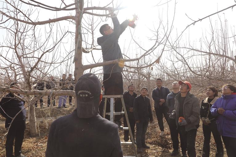 现场示范果树修剪技术,帮助农户解决种植难题,打造“不走的科技服务团”。