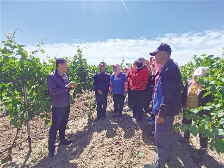 技术人员给农民讲解葡萄栽培技术。