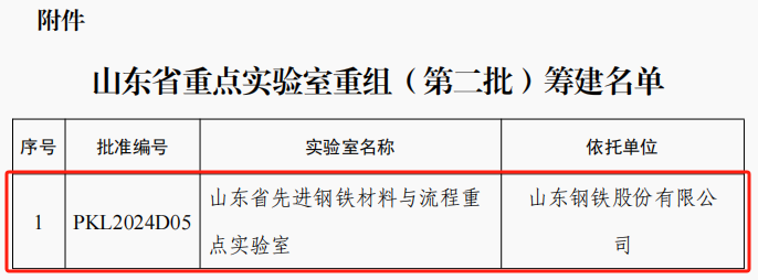近日,济南市钢城区山钢股份有限公司与中国海洋大学、北京科技大学联合组建的“山东省先进钢铁材料与流程重点实验室”获批筹建山东省重点实验室,省级科创平台建设取得重大突破。