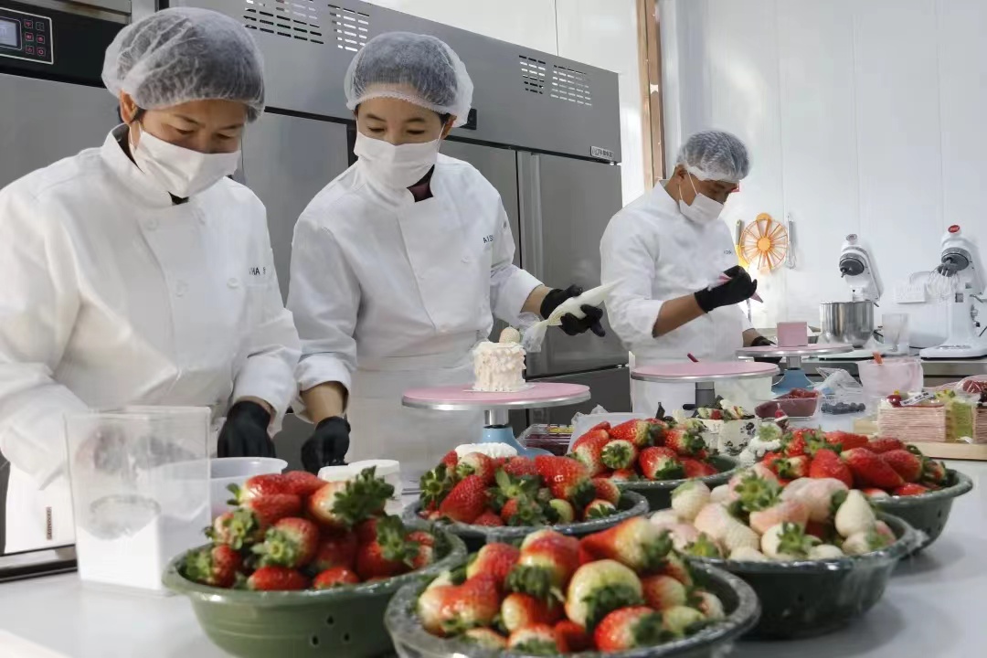 “随着草莓季的到来呢,我们也是推出了不少草莓系列新品,千层、吐司、小蛋糕等,其中就用到了我们头营镇马园村的草莓,最近的销量也是挺不错的,12月25日我们结合节日主题,以草莓为主要点缀,仅一天的蛋糕订单量就达到了300多单。”爸爸糖手工吐司负责人妥丽娜说。