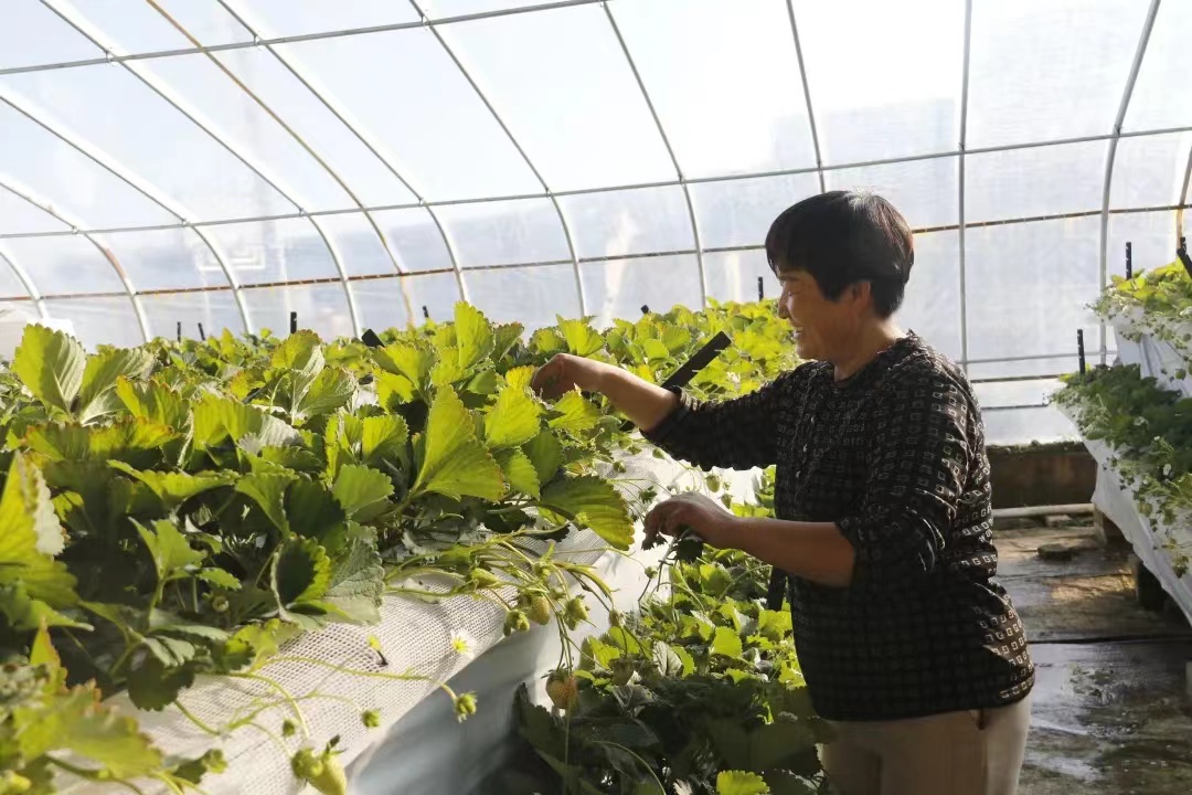 对于李怡贤来说,小小的草莓不仅丰富了群众的“果盘子”,还成为助力乡村振兴的“致富果”。今年是她种植草莓的第20个年头,种植规模也渐渐扩大到了十几棚,不仅如此,她还带动村上许多闲置劳动力在这里务工。