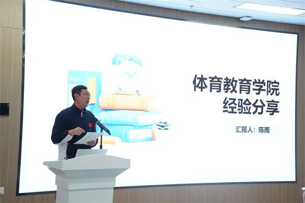 体育教育学院院长陈雨通过分享体育教育学院如何在日常课堂教学、教研活动、对外学习交流等方面下苦功,从而推动学校各个运动队科学训练,进而在各级各类体育竞赛中取得优异成绩,引导大家深化对日常教学活动与职业技能竞赛关系的思考与实践。