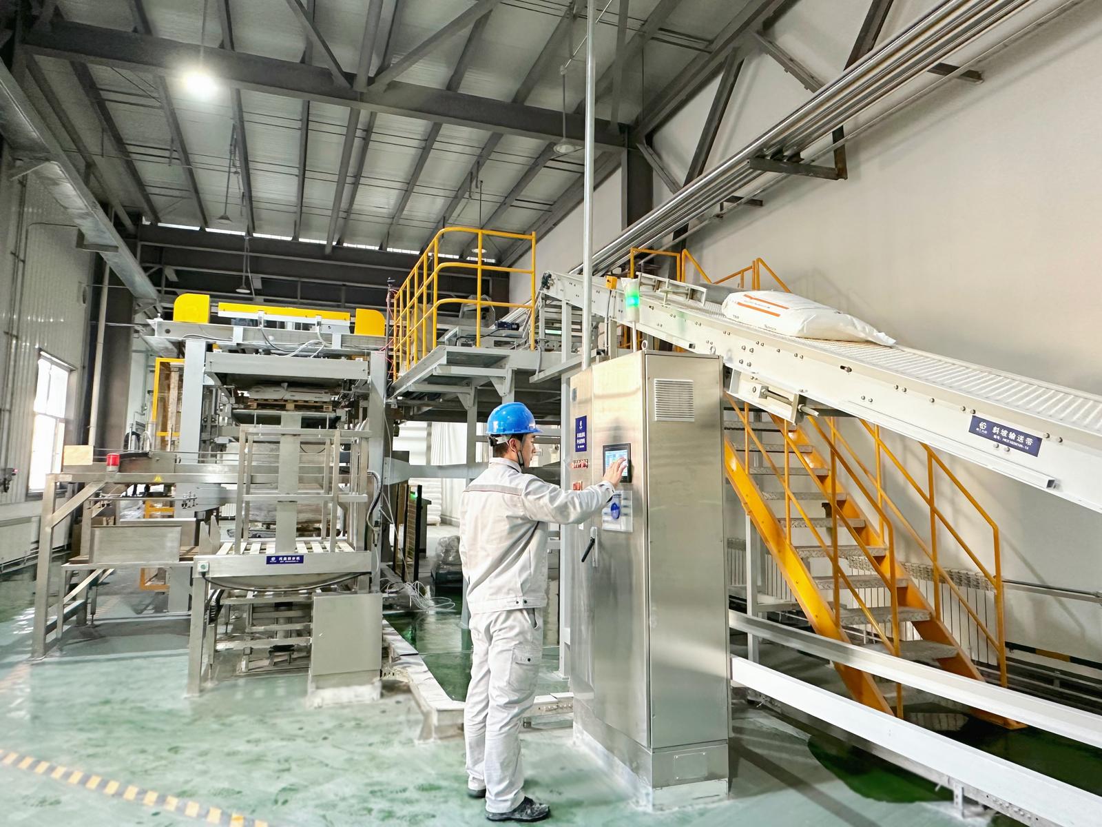 宁夏恒康科技有限公司胍基乙酸车间自动包装线。