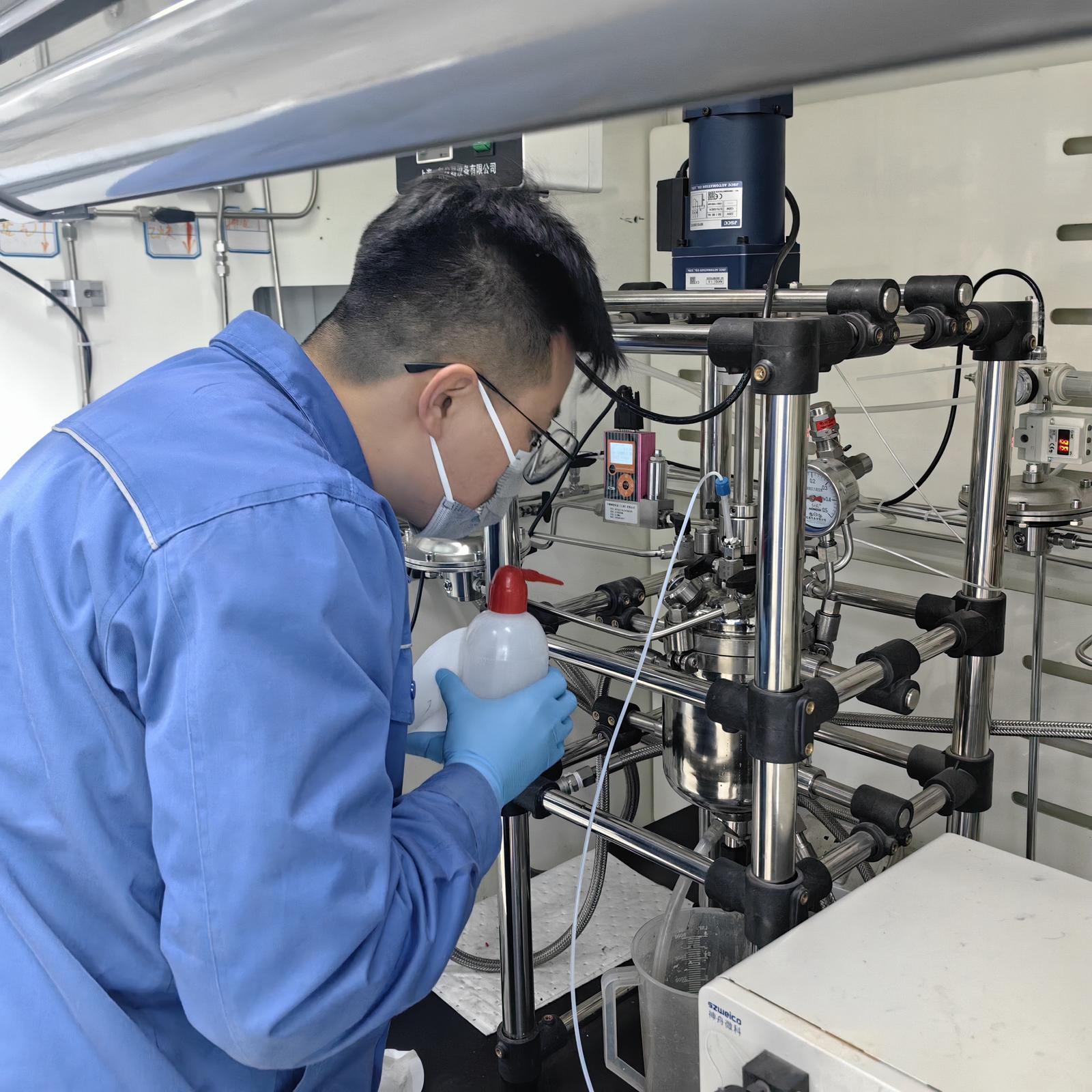 宁东现代煤化工中试基地实验员在实验室做炔醛法制BDO催化剂实验。