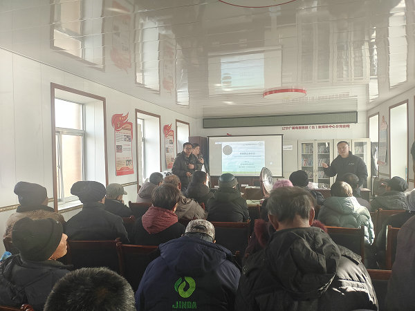 2024年12月11日,辽宁省农业科学院乡村振兴科技支撑-苹果新品种引进及优质栽培技术示范推广项目负责人、果树所李宏建副研究员带领团队成员刘影助理研究员,邀请苹果栽培团队首席于年文研究员、植保专家张广仁副研究员到大石桥市黄土岭镇开展技术培训,培训果农40余人,并发放了技术手册,大石桥市农业农村事务中心何忠民参加。在进行技术培训的同时,为基地发放了农药、梯子等农资用品。
