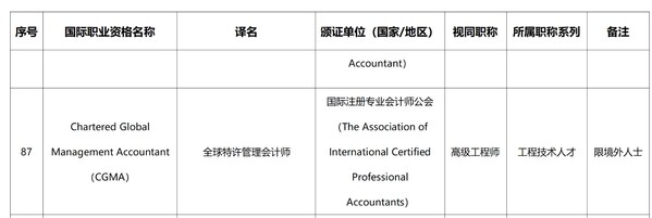 CGMA全球特许管理会计师纳入深圳职称认可目录 视同高级工程师