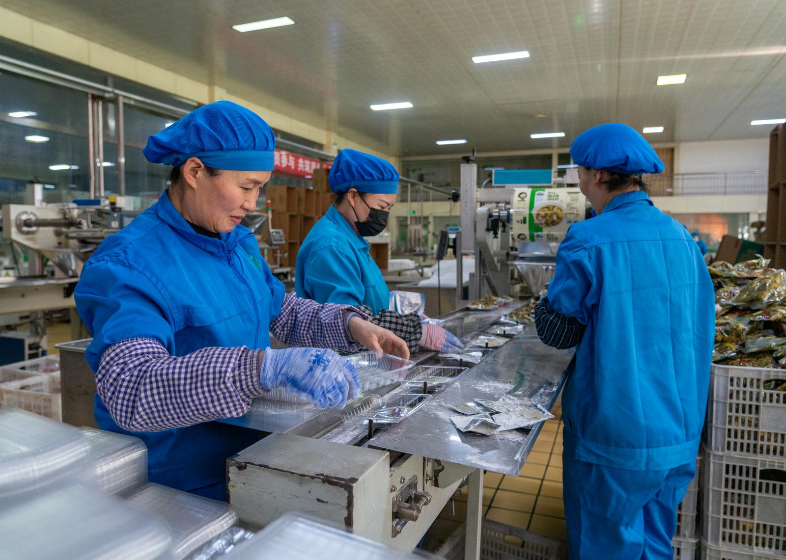 宁夏草原阿妈食品有限公司工人们在包装火锅底料。