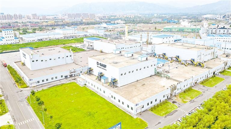 航拍镜头下的巴斯夫杉杉电池材料(宁夏)有限公司。记者 王晓龙 摄