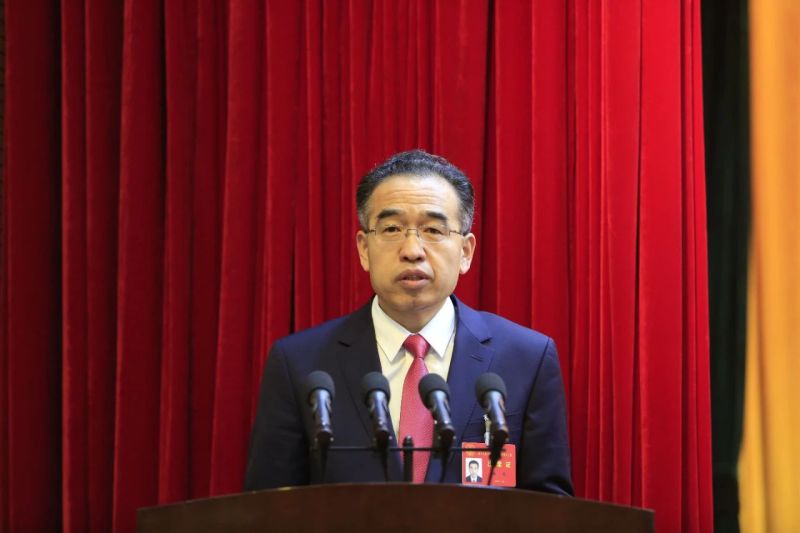 在热烈的掌声中,代市长徐龙代表市人民政府向大会作政府工作报告。报告分2024年工作回顾、2025年重点工作、着力建设人民满意政府三个部分。