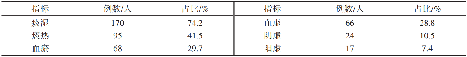 表5 PVS患者中医证候分类情况
