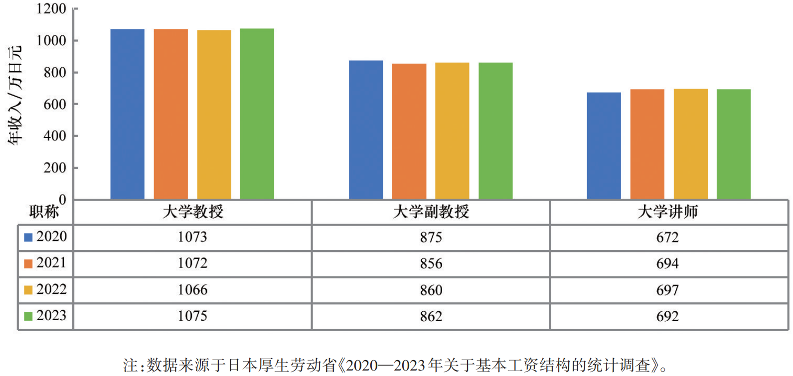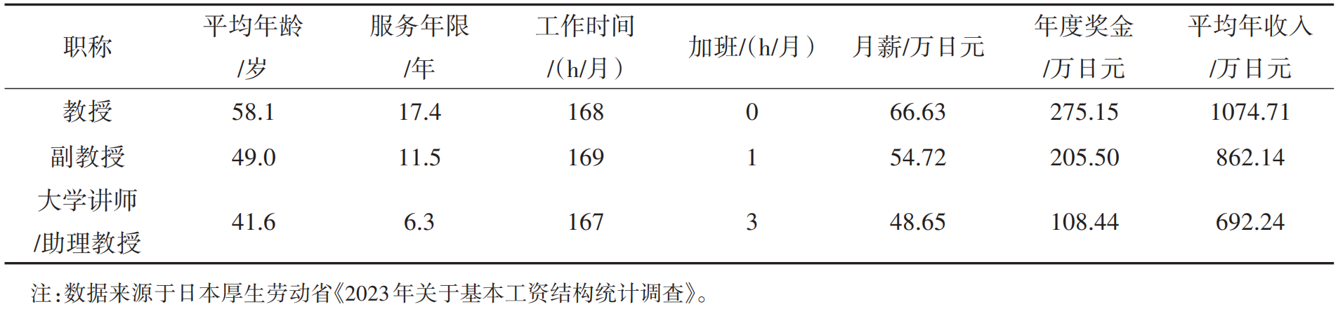 日本大学体系分为国立大学、公立大学与私立大学,本研究所指大学主要泛指这三类大学。在薪资体系中,国立大学与公立大学的科研人员主要依靠其职级(讲师、副教授、教授)和工作经验(或工作年限)等来确定。日本私立大学依据其规模与经营状况不同,其薪资水平与国立大学与公立大学略有不同。