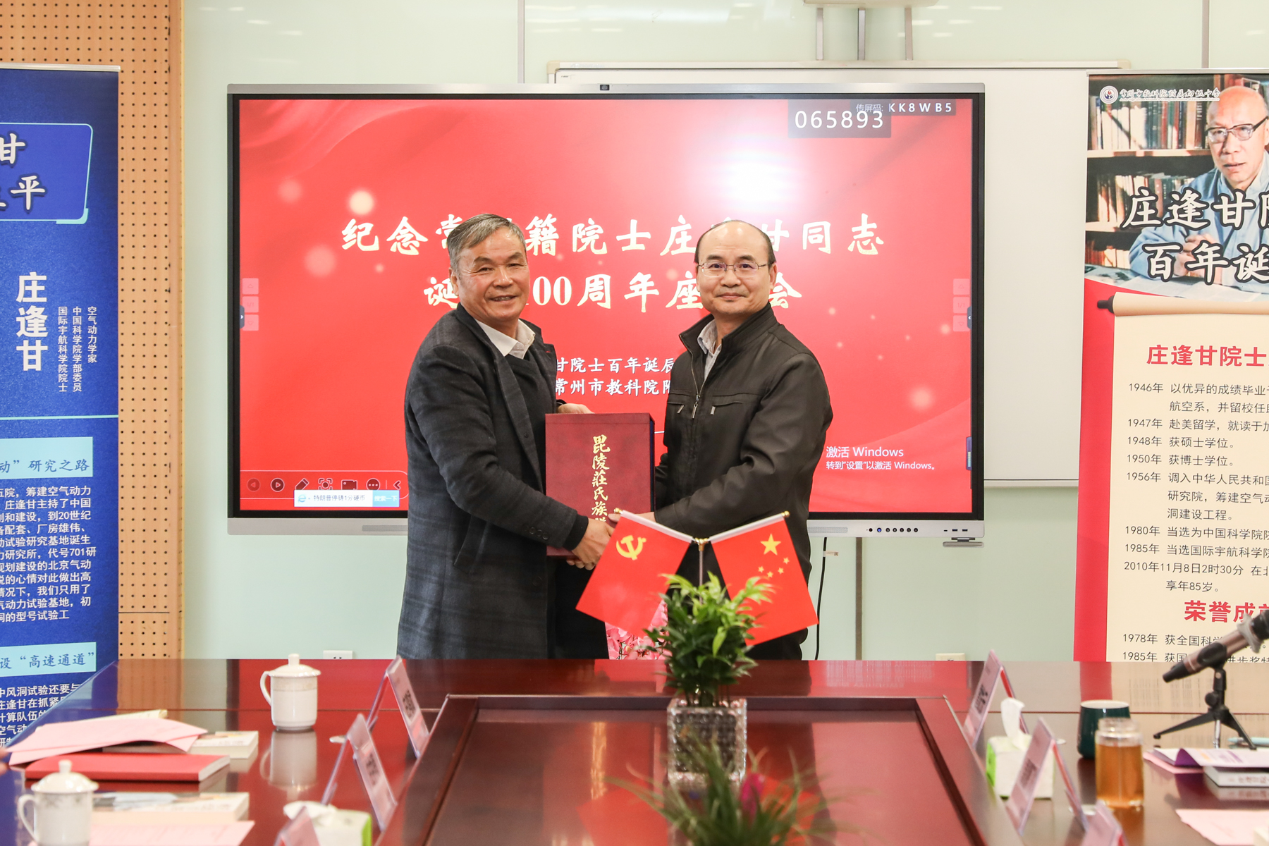 庄逢甘1925年2月11日出生于江苏常州。他长期从事导弹、火箭及再入飞行器的空气动力学研究试验和计算空气动力学的研究工作,对中国航空、航天事业的发展有重要影响,是中国空气动力学学科研究的主要倡导者。活动中,庄氏研究会向庄逢甘院士百年组委会捐赠了庄氏族谱。