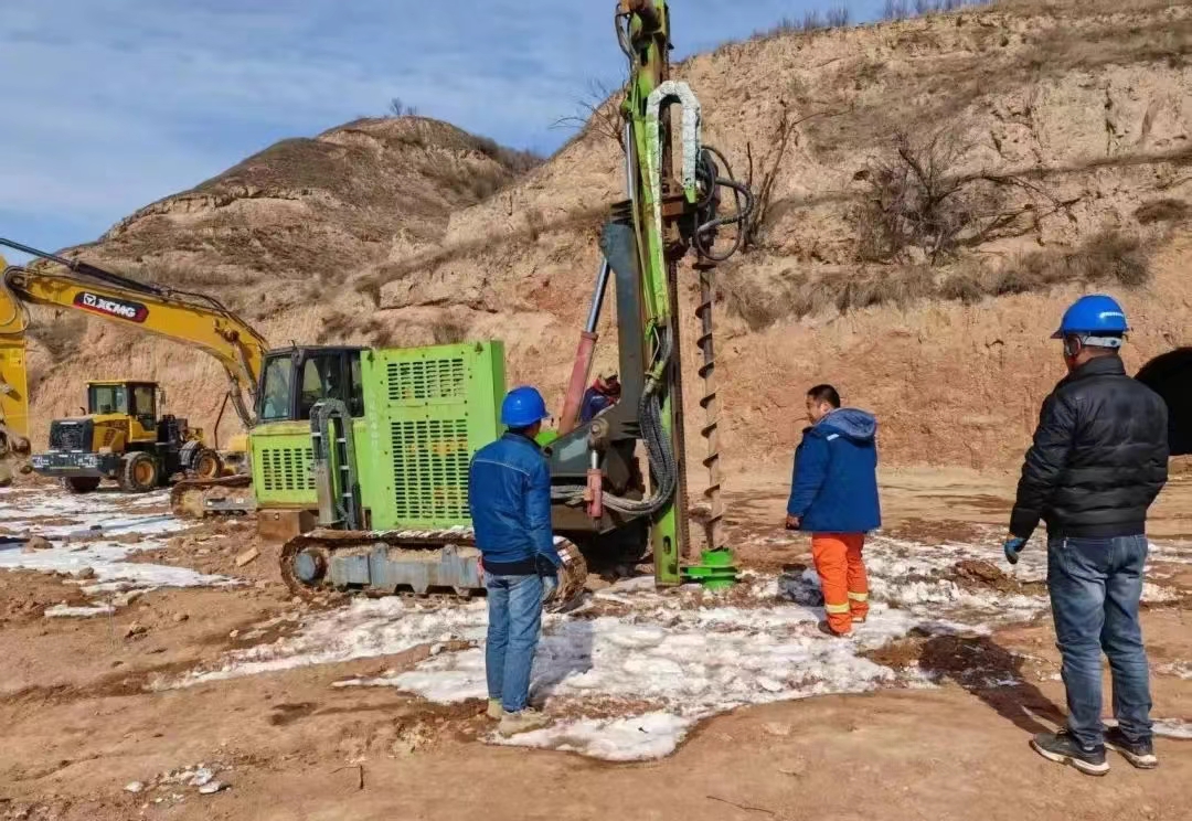 近日,记者走进官厅镇高红村地质灾害险点避险搬迁1.5MW分布式光伏发电项目现场,水泥桩打设工作已基本完成,工人们身着安全装备,穿梭于在施工区域,他们紧密配合,正在进行水泥桩的收尾工作。