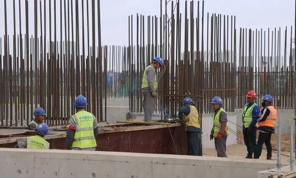 在原州区头营镇的固原市新材料产业园国能宁夏六盘山电厂2×1000MW机组建设工程现场,塔吊林立,车来人往。百余名工人正在进行主厂房混凝土浇筑工作。