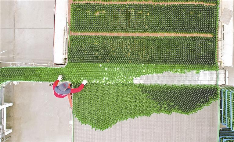 宁夏金莱特新材料科技有限公司生产车间里,一排排新鲜“出炉”的玻璃瓶经过退温,通过传送带进入质检环节。