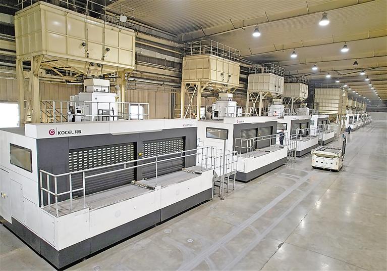 共享集团全球首座万吨级铸造3D打印智能工厂,大型3D打印机不停打印着来自世界各地的订单产品。