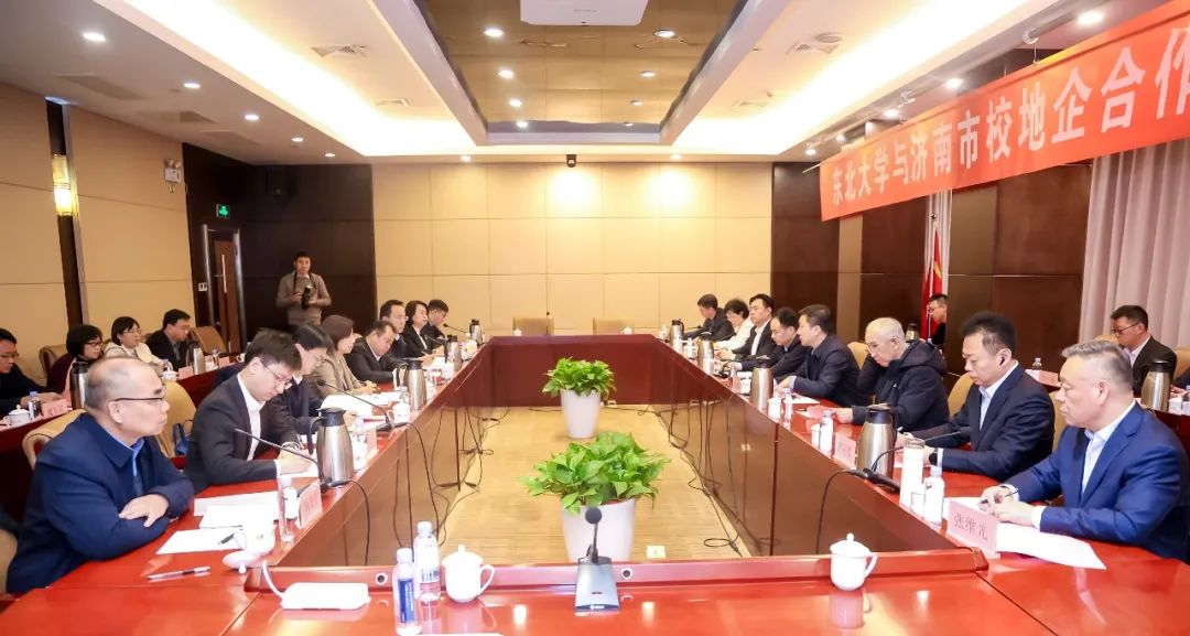 在“泉城校友大讲堂”开始前,济南市组织召开了校地企合作交流座谈会。会议由徐磊主持,刘延晖出席会议并讲话,吴涛参加座谈。座谈会上,东北大学对外联络与合作处主要负责同志和莱芜区、钢城区有关负责同志分别介绍了校地双方合作情况及合作意向,山东富伦钢铁有限公司、山东鲁欣粉磁新材料科技有限公司有关负责同志作为企业代表进行了交流发言。会议表示,济南与东北大学具备非常扎实的合作基础,特别是与莱芜区、钢城区在工业流程设计、产业转型升级、科技成果转化等方面已开展的合作项目及达成合作意向的项目累计17个,希望下步建立健全校地企常态化联络机制,充分发挥东北大学在冶金、采矿、信息工程、材料科学等领域的专业优势,持续加强产业发展、项目建设、科技攻关、产教融合、人才培养等方面交流合作,共同探索产学研深度融合新模式、携手打造校地企合作新典范。
