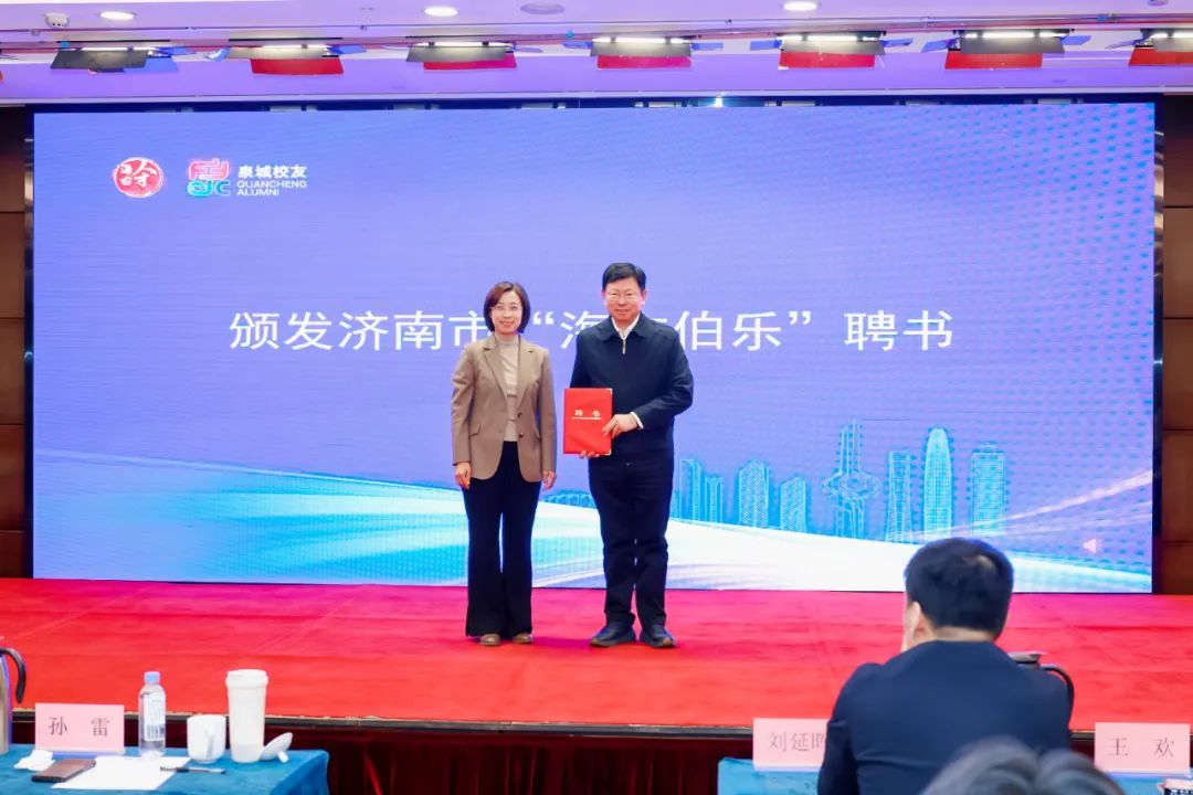 活动现场,东北大学校长助理刘延晖,济南市投资促进局党组副书记、副局长、市委人才办副主任吴涛分别致辞;济南市工业和信息化局党组成员、副局长、市委人才办副主任徐磊为孙雷教授颁发“海右伯乐”聘书;有关领导为“东北大学与山钢集团研究院研究生实习基地”揭牌,为优秀校友颁发济南“校友双招双引大使”聘书。