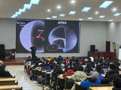 签到结束后,第一项活动是主题为《探秘太阳系》的科普报告。高月锋院长用生动的语言和震撼的视觉效果,带领小院士候选人们穿越浩瀚星辰,从太阳的炽热光芒到八大行星的神秘面纱,每一个知识点都激发了同学们对宇宙奥秘的无限遐想。