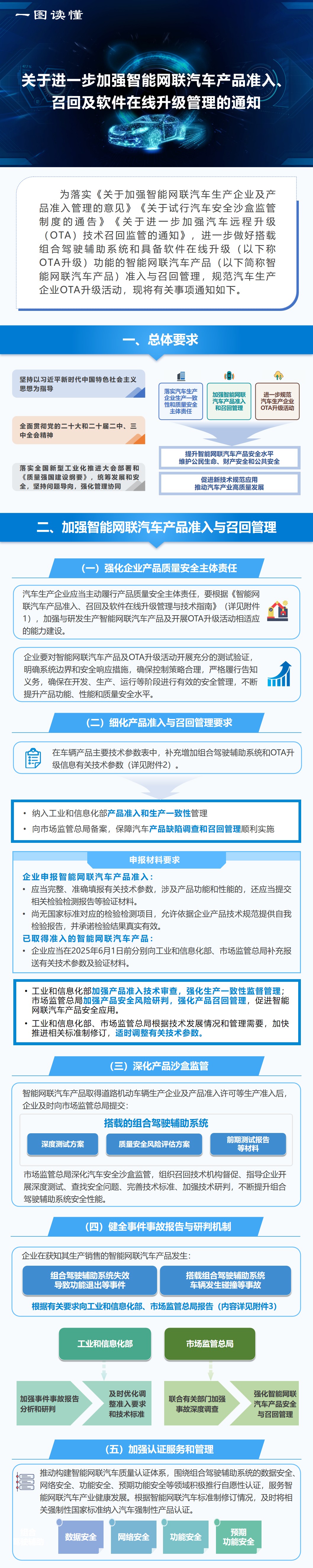 一图读懂:《关于进一步加强智能网联汽车产品准入、召回及软件在线升级管理的通知》