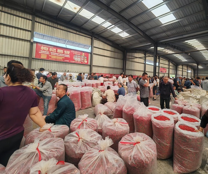 宁夏中宁国际枸杞交易中心,来自全国多地的干果枸杞在这里交易。(新华每日电讯记者马丽娟 摄)