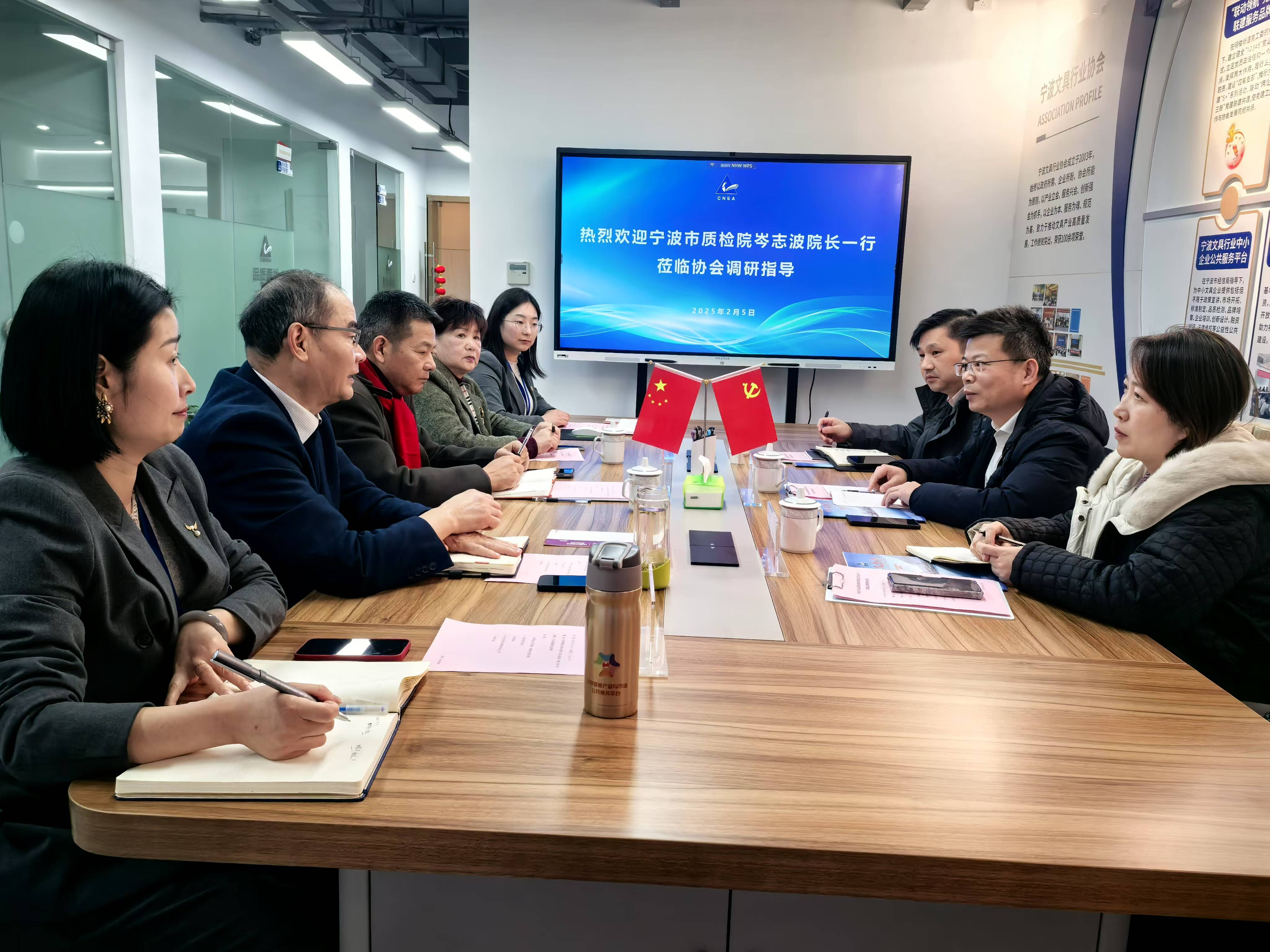 宁波市质检院岑志波院长一行莅临 宁波文具行业协会调研指导
