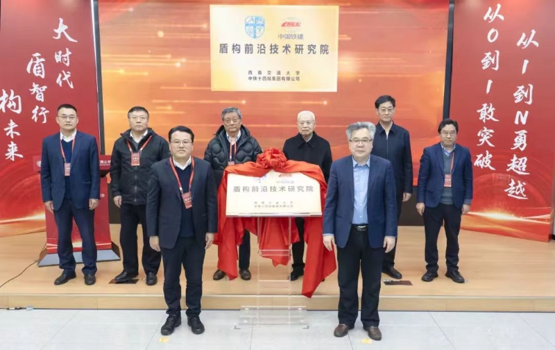 3月9日,“中铁十四局-西南交通大学盾构前沿技术研究院成立大会暨学术交流会”召开。在国家最高科学技术奖获得者、中国工程院院士钱七虎和中国工程院院士梁文灏、卢春房、王明洋等多位专家见证下,中国工程院院士、西南交通大学首席教授何川与中铁十四局党委书记、董事长周长进共同为研究院揭牌。