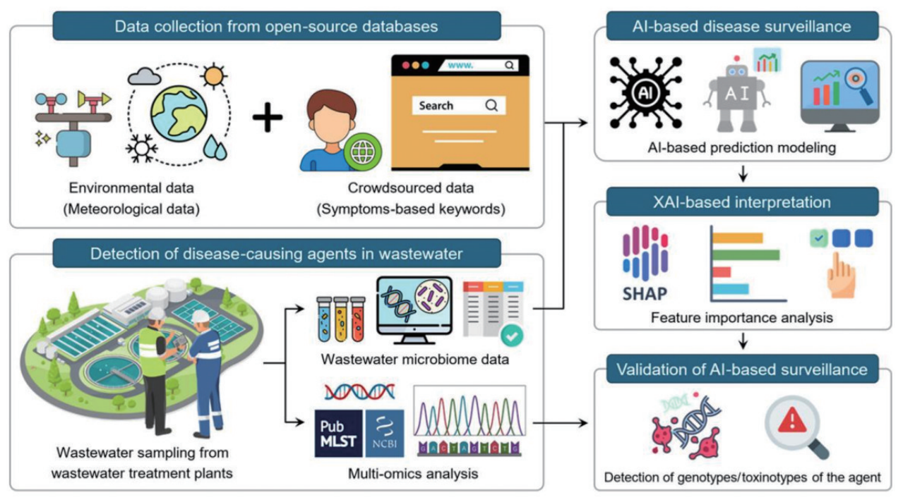 食源性疾病是公共卫生管理的紧迫问题,监测食源性疾病以确定其流行率和流行病学特征,并监测新发或变种病原体的出现,对于维护公共卫生非常重要。来自Kyung Hee University的Seungdae Oh团队开发了一个数据驱动的机器学习模型,用于与产气荚膜梭菌(CP)相关疾病的监测(图 17)。研究结果揭示了污水中CP的存在及其基因型/毒素型,验证了微生物组数据支持的ML监测对食源性疾病的效用。