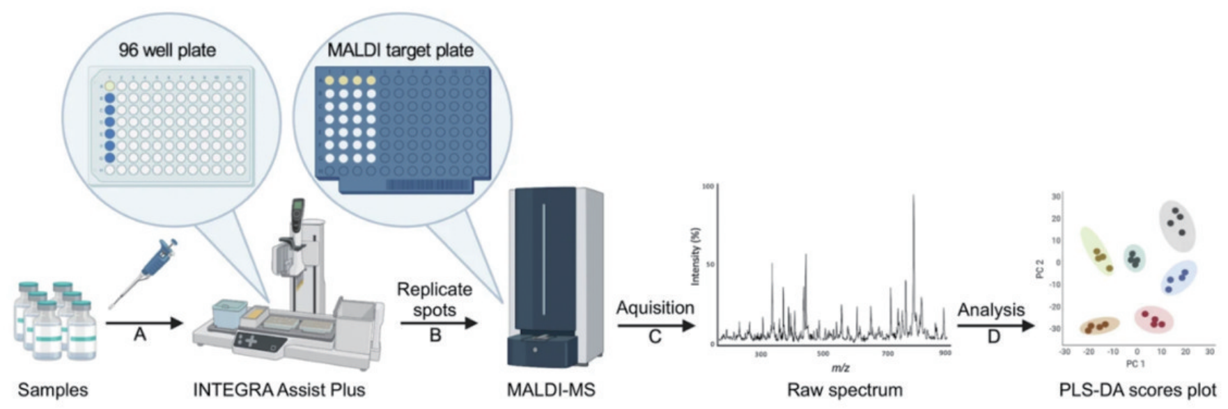 图18 基质辅助激光解吸/电离-质谱(MALDI-MS)样品制备和分析工作流程