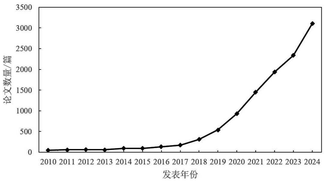 图1 Web of Science核心合集中与环境中人工智能相关论文的发表时间分布
