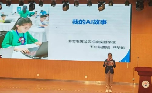 五年级的马梦锦同学带来了她的AI大模型原创绘本故事,在AI智能的帮助下,唤醒大家的节水环保意识。