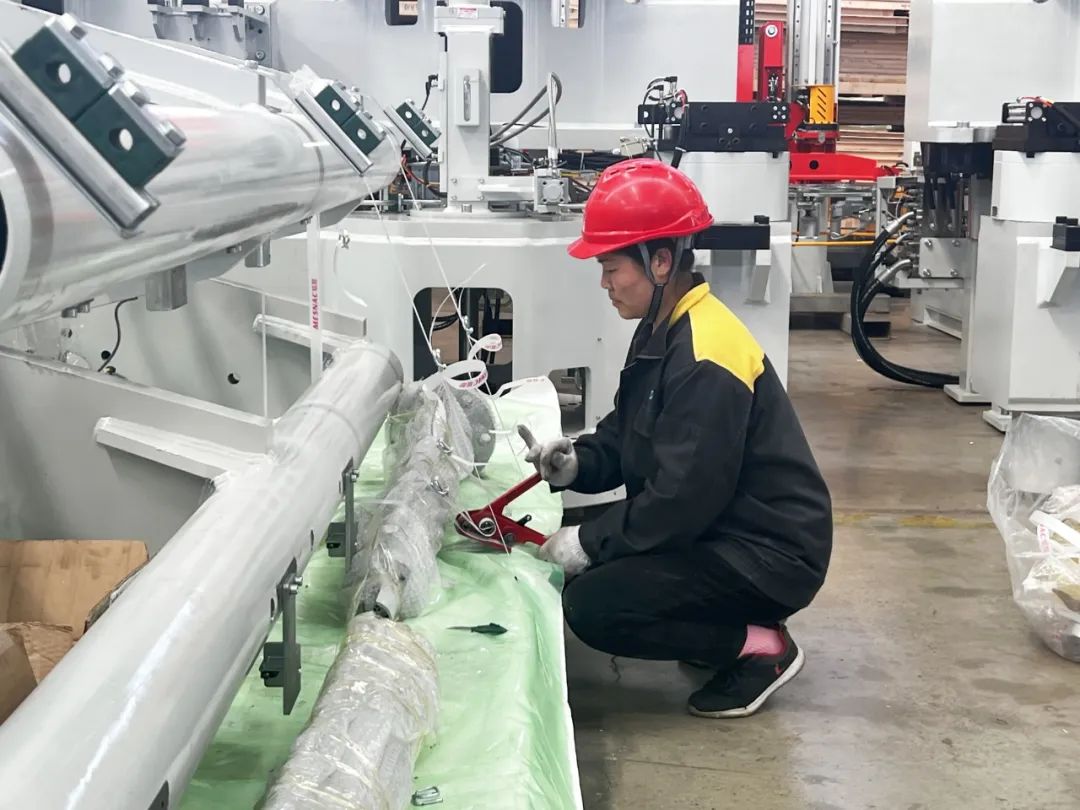 江苏伊凡诺尔智能科技有限公司董事长杨杰介绍:“这批发往柬埔寨的订单有42台设备。今年我们轮胎自动化装备订单有400多台,计划一个月发货40多台,产能基本满足订单需求。”