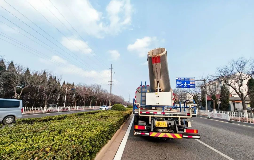 运用“水陆空”立体作业模式,建立道路深度保洁。地面层采用“小型洒水车+高压水枪”组合装备,针对桃园路附近道路常规冲洗的“盲区”,如狭窄缝隙、路牙石边角等细微之处展开深度冲刷,实现道路清洁无死角;空中层部署智能雾炮车,依托风向实施动态巡航,在上风向对扬尘实施精准高效拦截,最大程度降低颗粒物浓度,为道路撑起“防尘伞”。