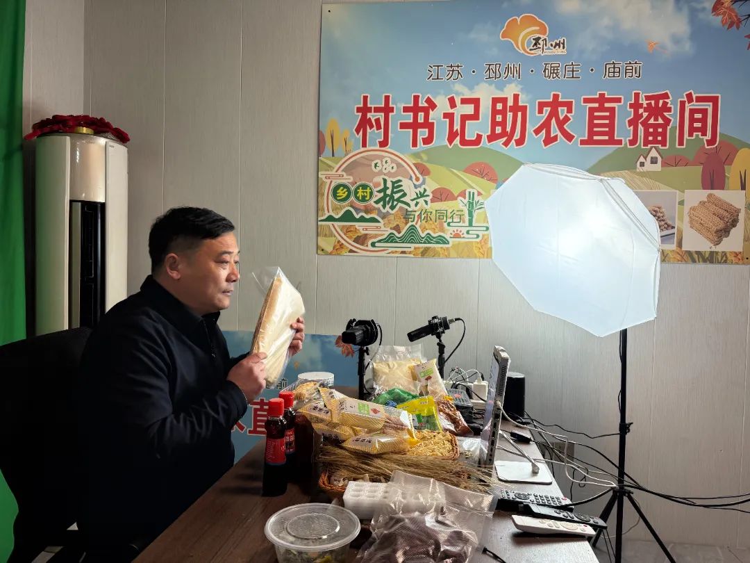 直播带货这一新业态成为富民强村的新路径。在碾庄镇庙前村的“村书记助农直播间”里,该村党支部书记王震正向网友们介绍村里的特色食品“馓子”。
