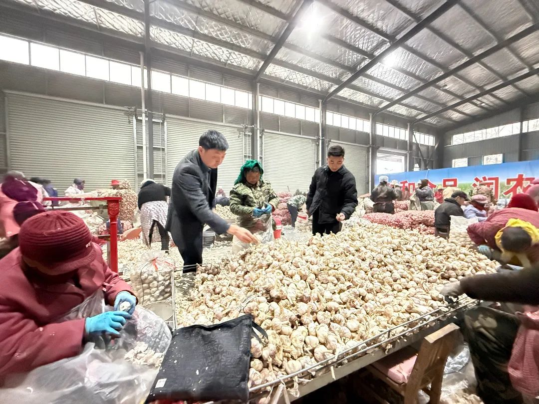 企业总经理耿亮告诉记者:“我们以‘村企联建’方式建设冷库和大蒜加工区,全年发放工资180万元左右。”