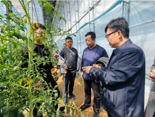 3月19日,河北农业大学农业科技特派员刘廷辉走进河北省保定市蠡县鲍墟镇刘佃庄村的西红柿大棚,为种植户讲解春季西红柿病虫害防治技术要点。