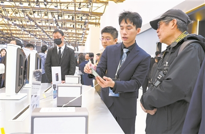 图为工作人员(右二)在介绍家庭数据存储设备。新华社记者 方喆摄