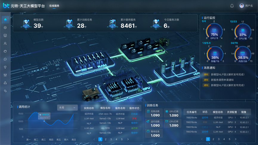 作为特斯联重要的算力中心,徐州特斯联公司落户徐州经开区后,已成功为特斯联集团园区MOSS大模型(注②)、经济大模型、能源大模型,以及20多个交付项目的训练和推理模型的部署提供强力支撑。同时,公司还自研了算力调度系统,并提供相关AI模型服务及模型训练服务。