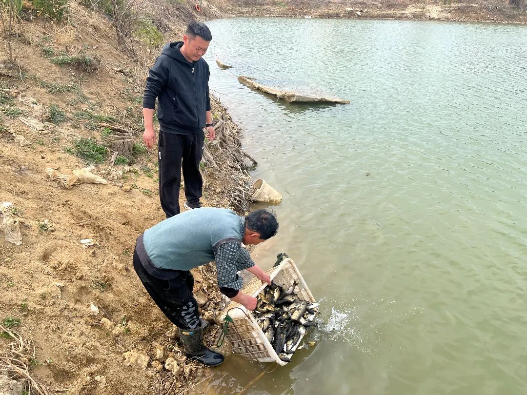 邢楼镇小堌村党支部书记林佩佩介绍:“我们分两批次共投放3万余尾鱼苗,预计收益7万元。我们还投放了黄金鲫,为下一步发展休闲垂钓打下基础,多渠道增加村集体收入。”