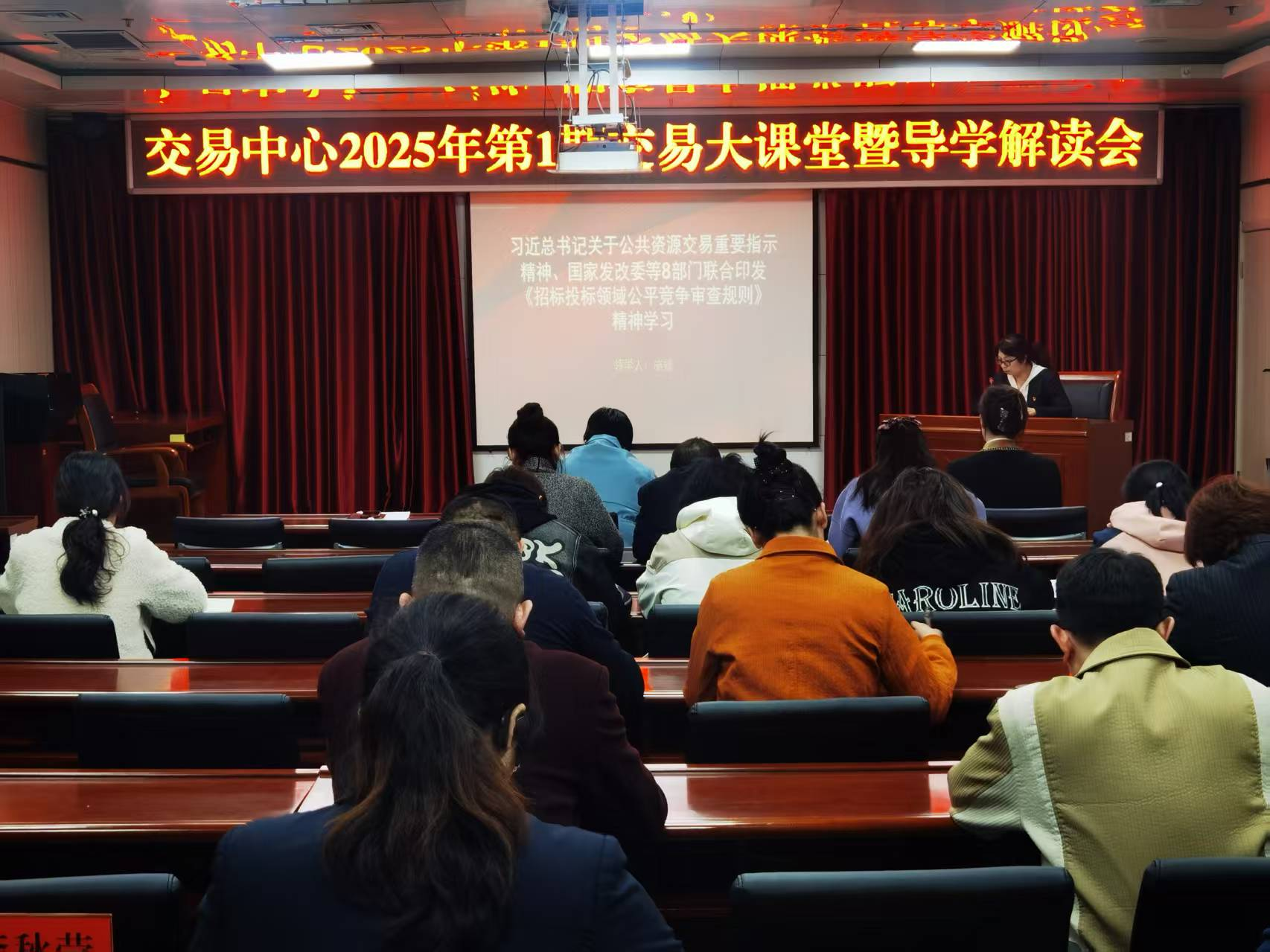 政策解码:激活从文件到实践的"神经元"。近日,自治区公共资源交易服务中心举办了2025年首期交易大课堂暨政策导学活动。交易中心两位副主任领学习近平总书记关于公共资源交易的重要指示和国务院办公厅、自治区发展改革委关于创新完善体制推动招标投标市场规范健康发展政策文件,支部书记化身“政策解码师”,以党的二十大报告“破除地方保护和行政性垄断”和建设全国统一大市场等顶层设计为主轴,对《招投标领域公平竞争审查规则》进行“解剖麻雀式”解读。通过“政策原文+地方案例”的双线解析模式,将抽象条文转化为可操作的“政策说明书”,聚焦四大核心领域,解析七大类40余项禁止性规定,对当前公共资源交易领域存在的堵点问题提出破题思路。这场“靶向解读”直击痛点,列举的“招标文件设置本地业绩或特定行业证书;个别交易服务机构行使审批、监管职权;采用抽签摇号等方式确定中标人;限定保证金缴纳形式或指定保函机构”等案例,让参会干部直呼“接地气”。尤其创新提出“全流程审查与动态评估”“数智化工监管与协同治理”“社会与刚性约束”等机制,为破除行政性垄断提供了实操路径。参会人员纷纷表示,政策解读既有理论高度,又贴近工作实际,为后续落实各项工作任务提供了清晰方向。