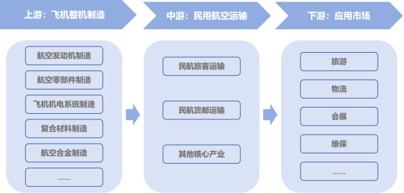 上游:主要包括了飞机制造、飞机零部件制造以及飞机材料制造等一系列从原材料、零部件到整机的供应;