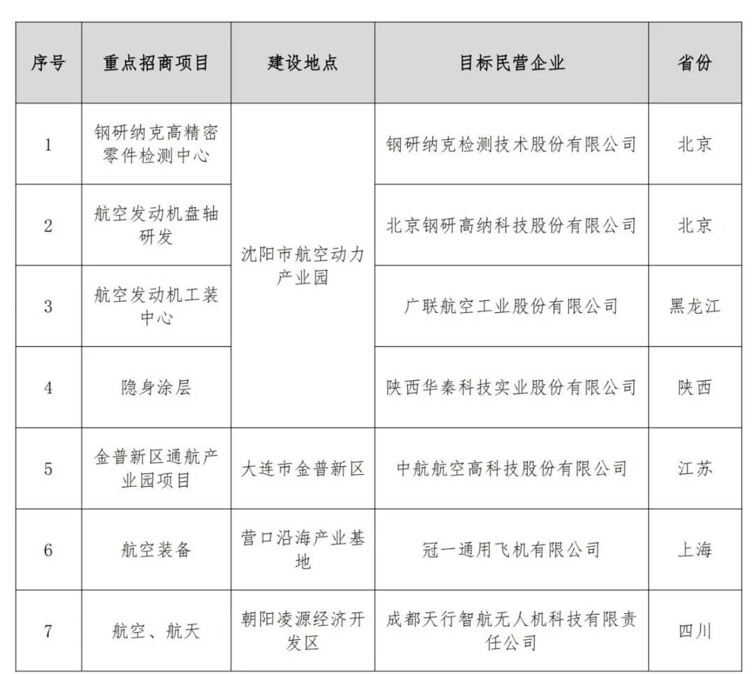 目前,辽宁省在沈阳、大连、本溪、营口、盘锦、朝阳等六个城市形成了航空产业基地及园区。