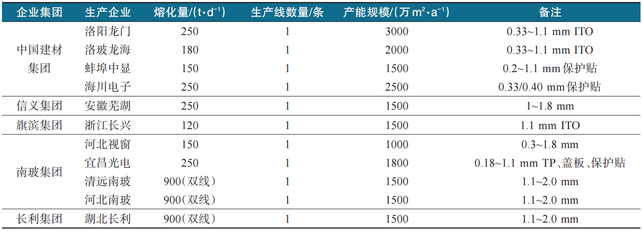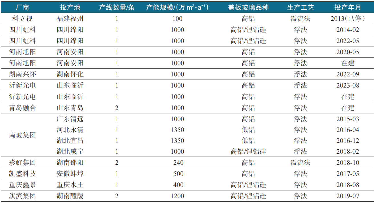 表2 国内盖板玻璃生产线情况