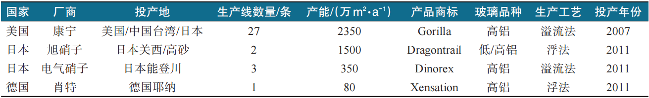 表4 国外高铝盖板玻璃生产厂商及相关信息