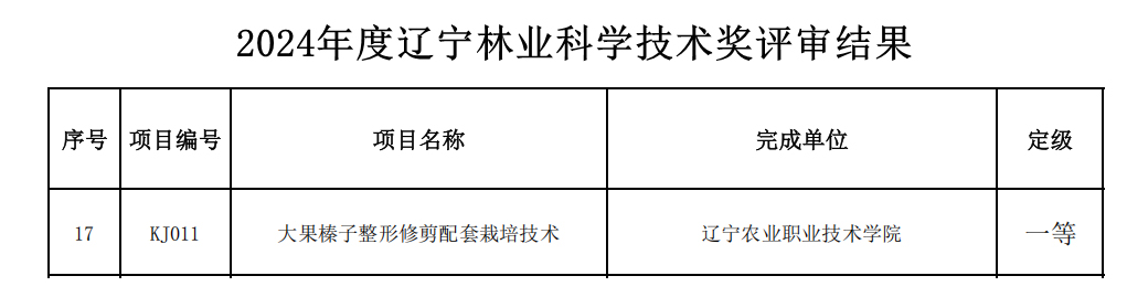 辽宁农业职业技术学院又一项成果获评2024年辽宁林业科学技术奖