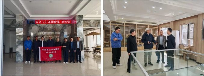 专家团队首先抵达青岛卡尔宠物食品有限公司,在公司总经理王峰的陪同下,专家们详细了解了公司的生产流程、产品质量控制以及技术创新等方面的情况,并就配方改良升级、团体标准认证、产品成果评价等方面提出了宝贵的建议。